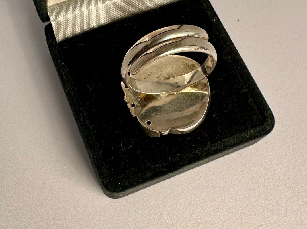 Silver ring. Red Coral/ diamond/emerald/ruby